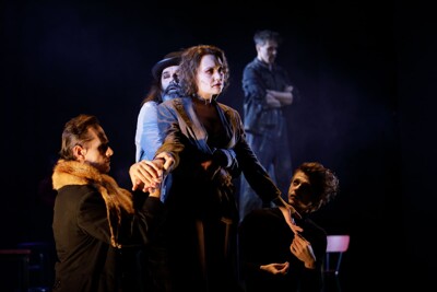 V inscenaci se kouří cigareta a používá umělý dým, repliky střelných zbraní a zazní hlasitý výstřel.