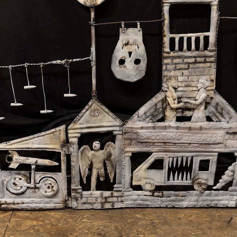 Konstiantyn Zorkin (*1985, Charkov) patří k výrazným osobnostem současné ukrajinské umělecké scény. Ve své tvorbě se pohybuje na pomezí sochy, instalace, kresby, ilustrace, loutkového divadla a performativních forem. Pracuje převážně s elementárními materiály, jako jsou dřevo, kov či textil, a jeho díla se vyznačují redukovaným, expresivním tvaroslovím a silnou symbolickou rovinou, čerpající mimo jiné z evropské mytologie a lidových tradic.